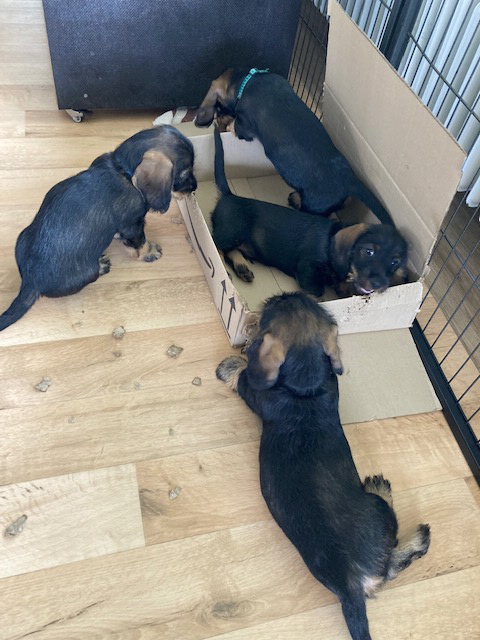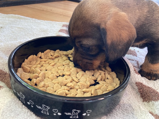 Täglich werden die Welpen aktiver. Dafür braucht man viel Energie. Kürzlich gab es die zweite Wurmkur: keine Delikatesse aber wichtig.