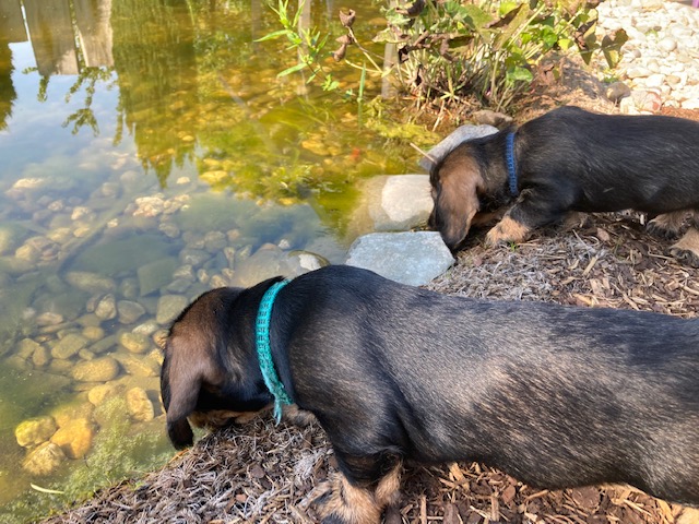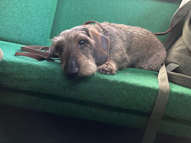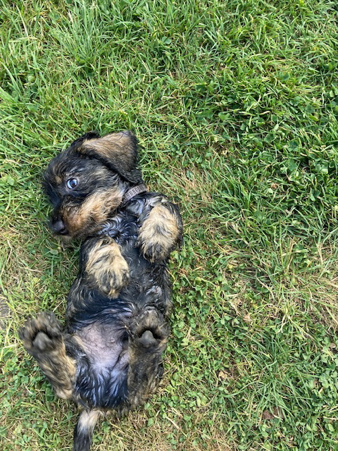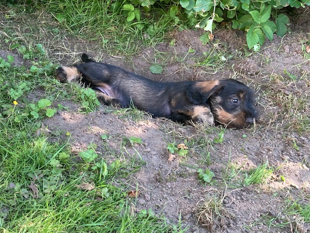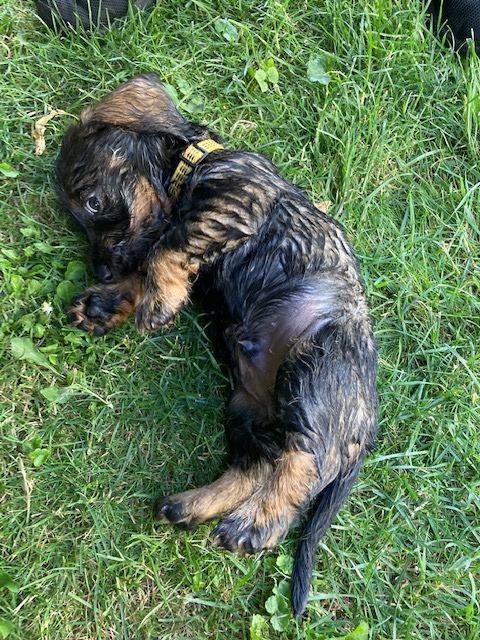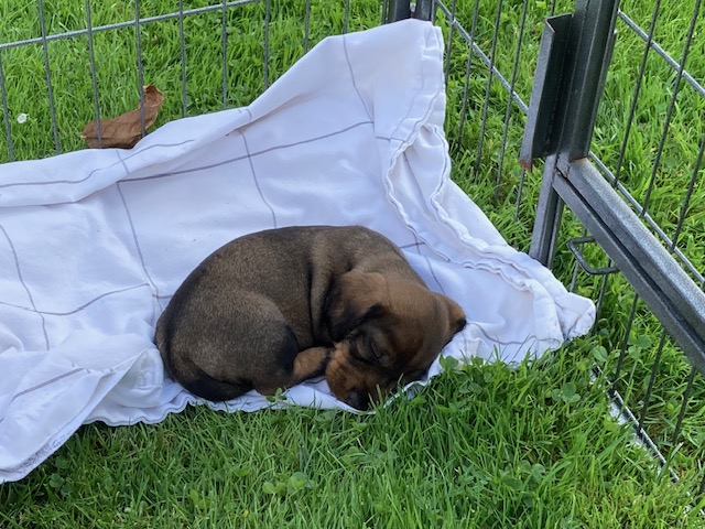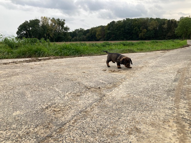 Mit fast 5 Wochen darf Käthe die große weite Welt entdecken. Sie begleitet uns auf unseren Hunderunden und schnuppert hier und da. Es gibt für sie täglich neue Dinge kennen zu lernen. Zwischendurch pausiert sie bequem im Rucksack.