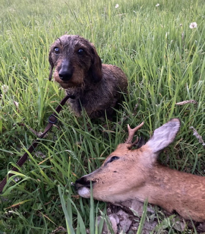 ...aber so lange hat es dann doch nicht gedauert. Unsere Edda hatte den Bock im hohen Gras sofort in der Nase und nahm ihn in Besitz.