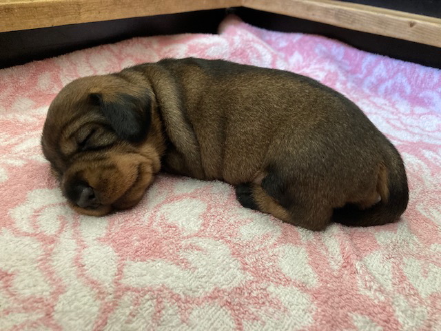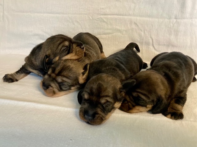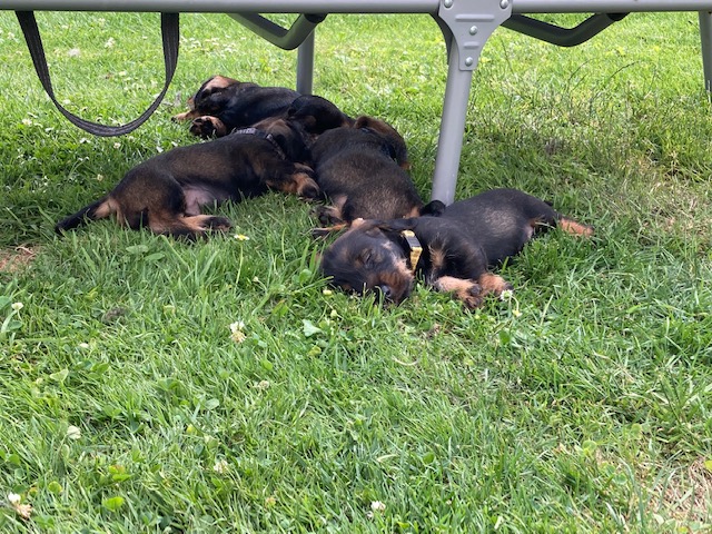 Die Welpen nehmen täglich zu. Alle haben in ihren ersten 10 Lebenstagen bereits zwischen320g und 350g zugenommen.