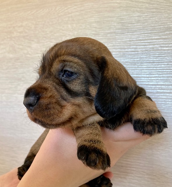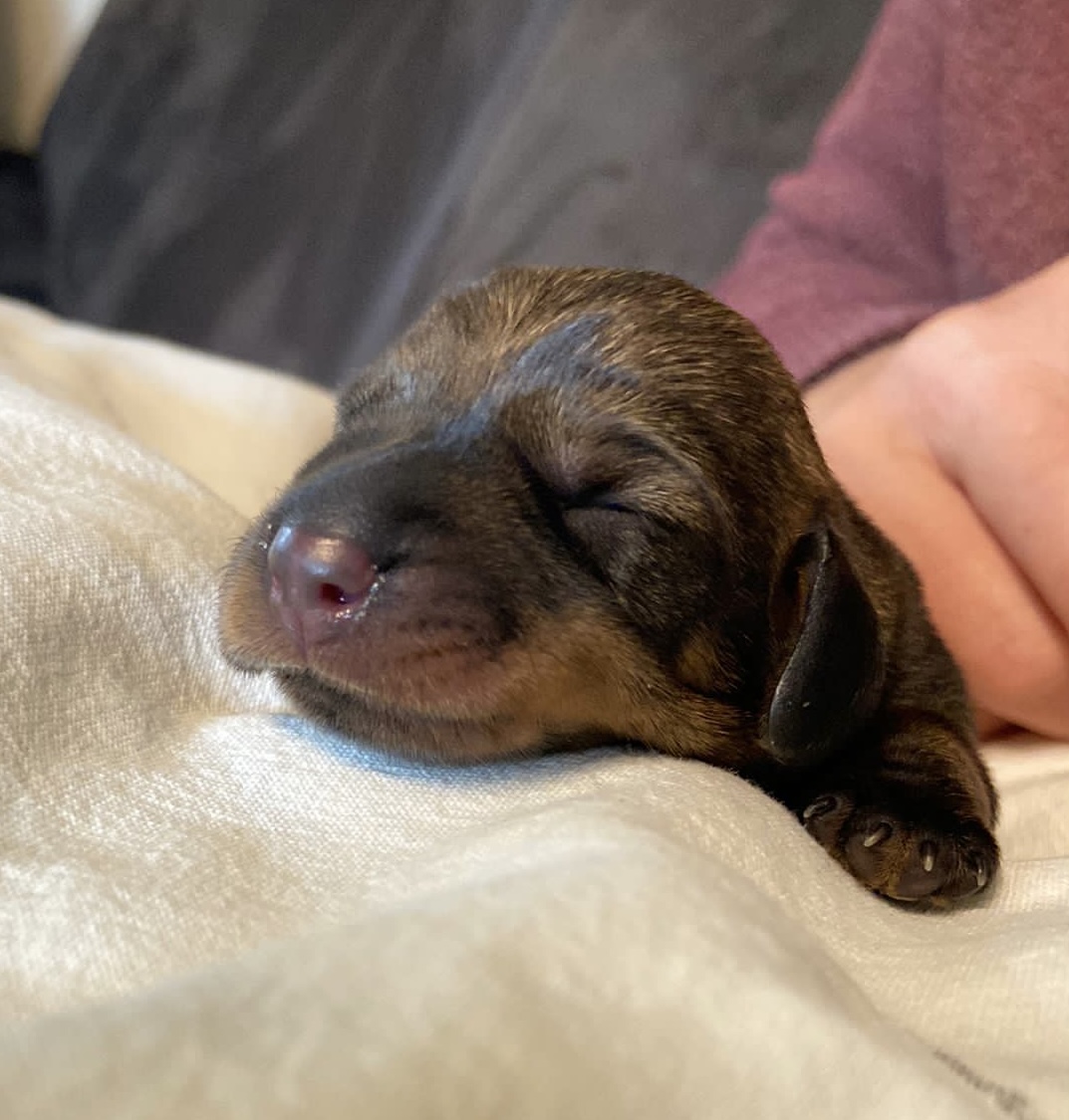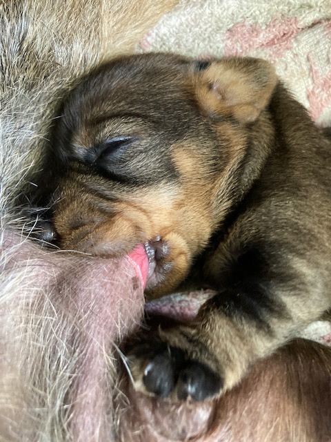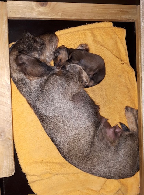 Nach einer langen schweren Geburt erblickte die kleine Hündin um 0.45 Uhr das Licht der Welt. Sie brachte 280g auf die Waage. Der zweite Welpe hat es leider nicht geschafft.