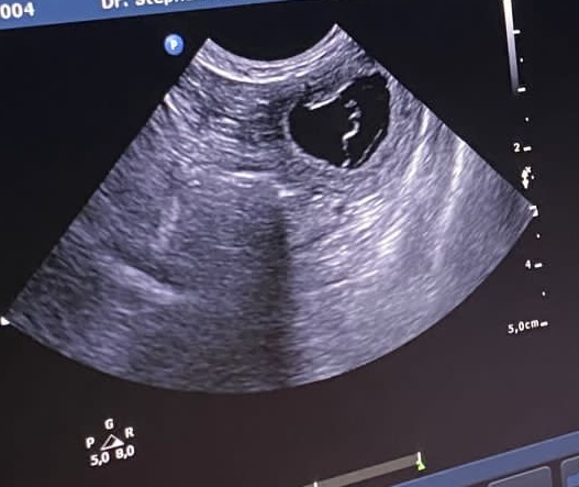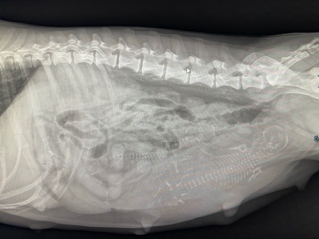 Das Röntgenbild zeigt es ganz deutlich: Edda trägt zwei Welpen aus.